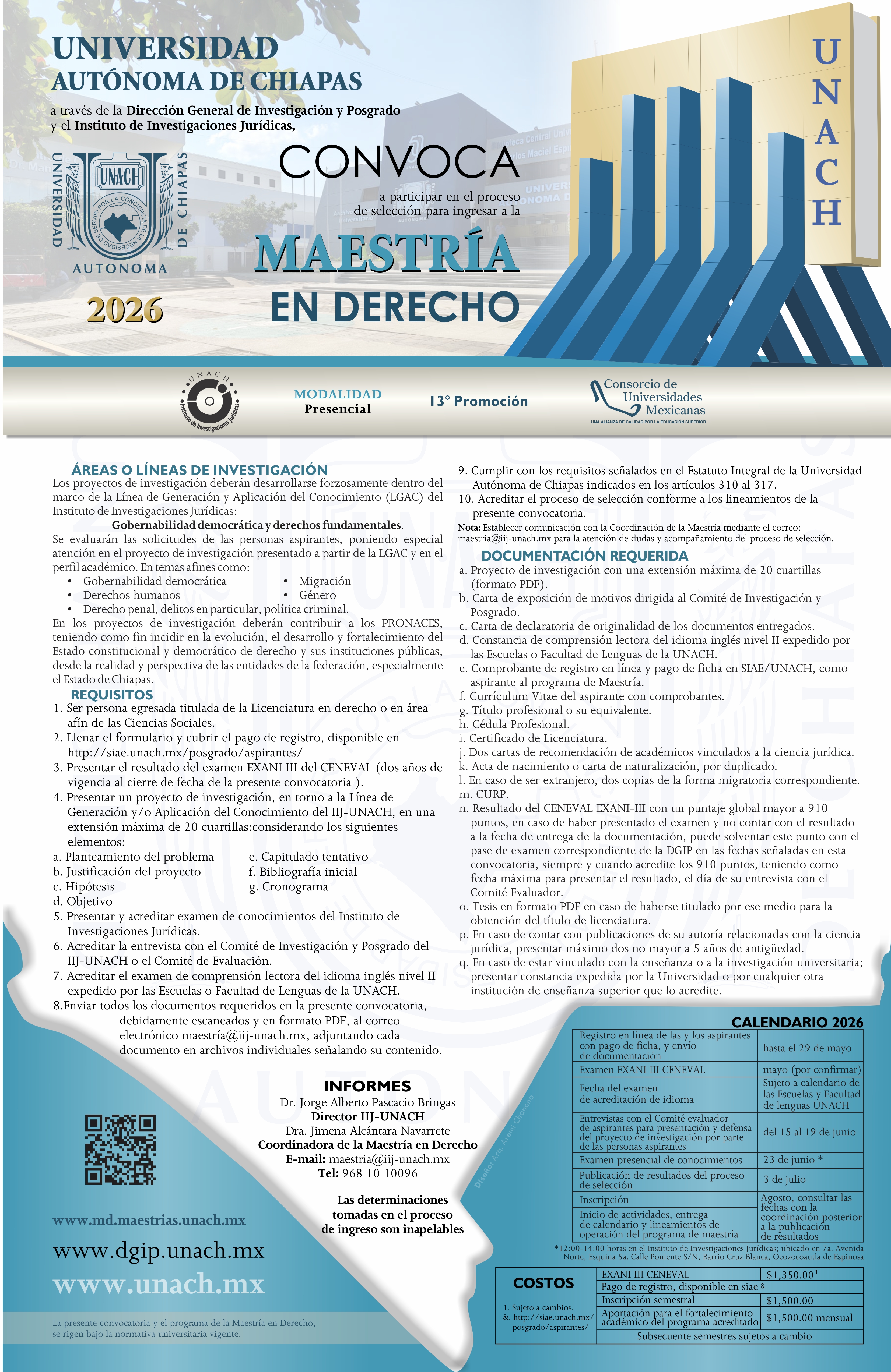 CONVOCATORIA DE LA MAESTRÍA EN DERECHO. REGISTRO EN LÍNEA, HASTA EL 29 DE MAYO DE 2026